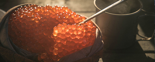 Ты приехал в рыбный край и мы просто обязаны кормить тебя до отвала. Икра, копченая нерка, крабы, шурпа из оленины и многое другое